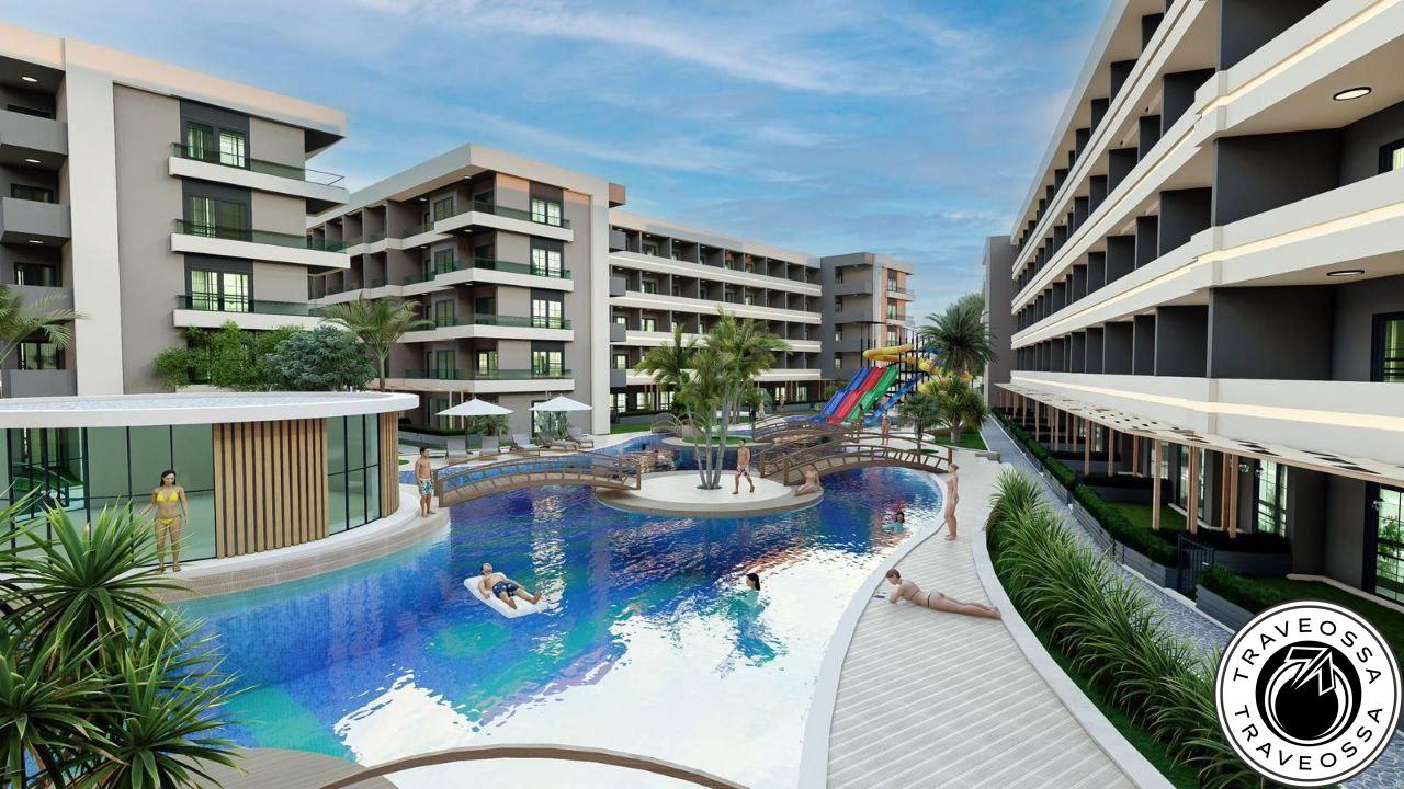 Viva em estilo resort: acolhedor apartamento-villa 1+1 com jardim privado a apenas 350 m do mar. Condomínio fechado com todas as comodidades e lojas próximas.
