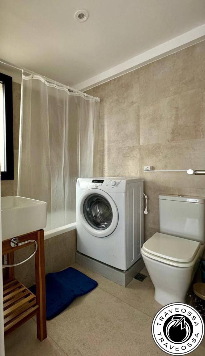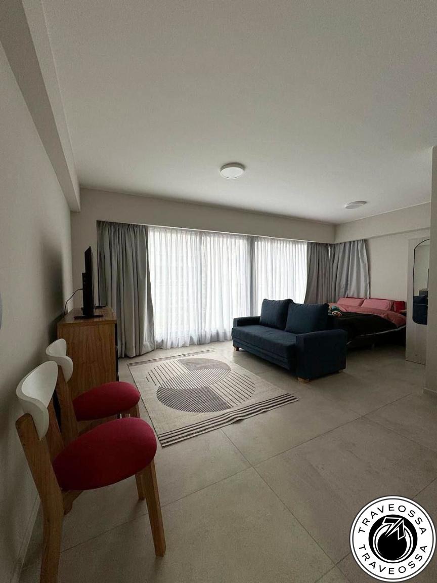 - Описание: новая уютная стильная студия с большой террасой и видом на город. Есть раскладной диван (с дополнительным матрасом), двуспальная кровать, все приборы (фен, утюг), стиральная машина, полностью оборудованная кухня, высокоскоростной Wi-Fi, текстиль: одеяло, ортопедические подушки, два комплекта постельного белья, полотенца; стол и стулья на террасе, живые растения; кондиционер (холод/тепло), электрический тёплый пол. При годовом контракте устанавливают гриль (парилью).