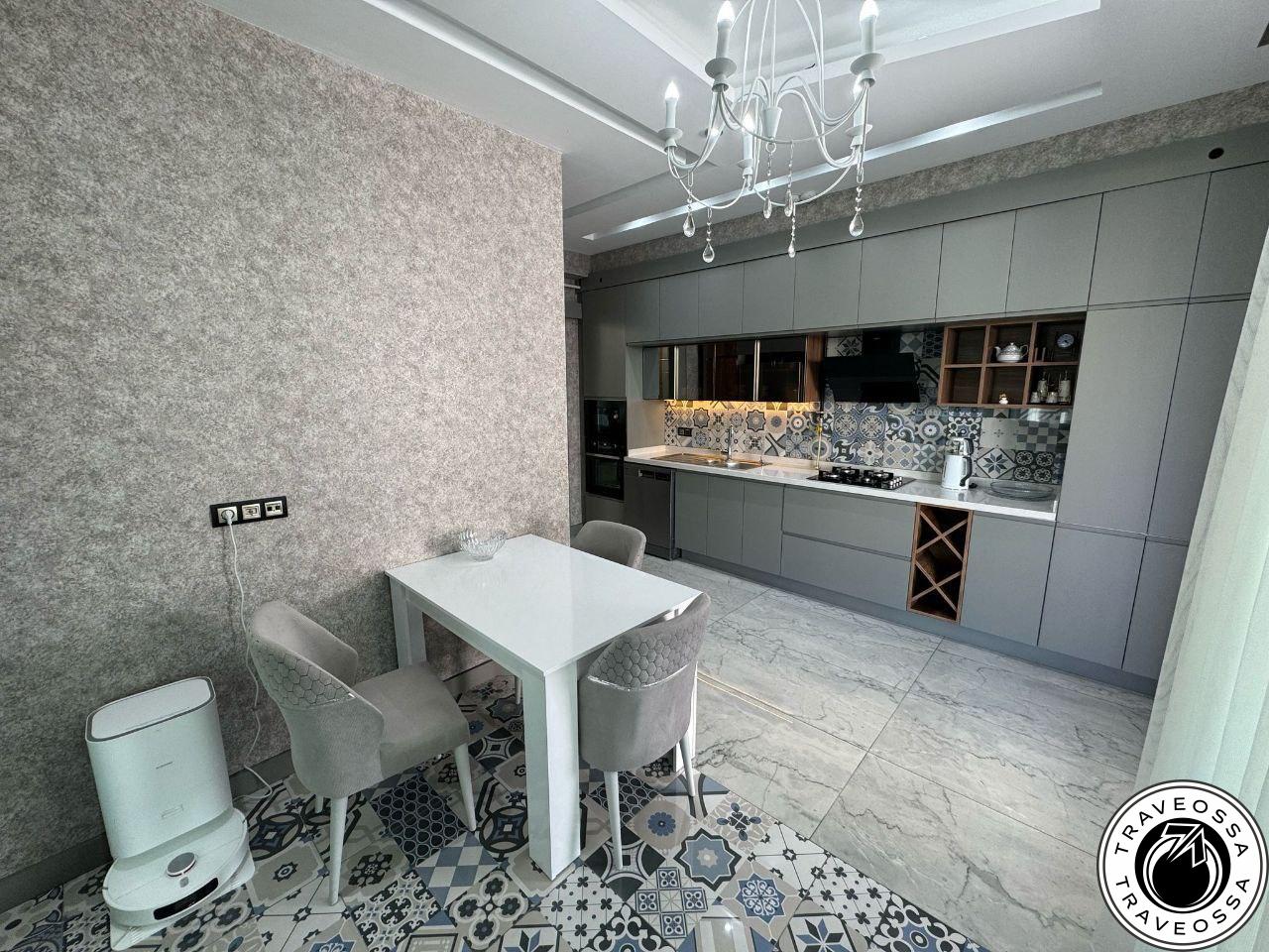 Предлагается полностью меблированная квартира площадью 120 м² на втором этаже нового дома, всего в 200 м от моря. Большая частная терраса и инфраструктура комплекса, магазины и рестораны в шаговой доступности.